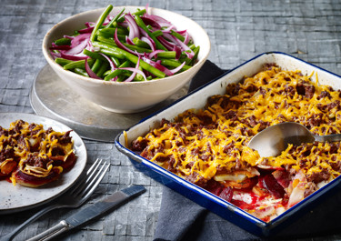 Dejlig ret med flere forskellige rodfrugter, som får et ekstra pift med spicy chiliost. Retten tager lidt tid at forberede, men så passer den stort set sig selv i ovnen.