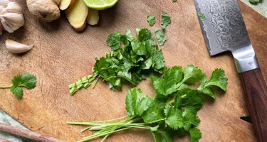 Hvis du ikke har frisk koriander, eller ikke kan lide det, kan du udskifte krydderurten med thaibasilikum, estragon eller kørvel, alt efter hvilken ret det drejer sig om.
