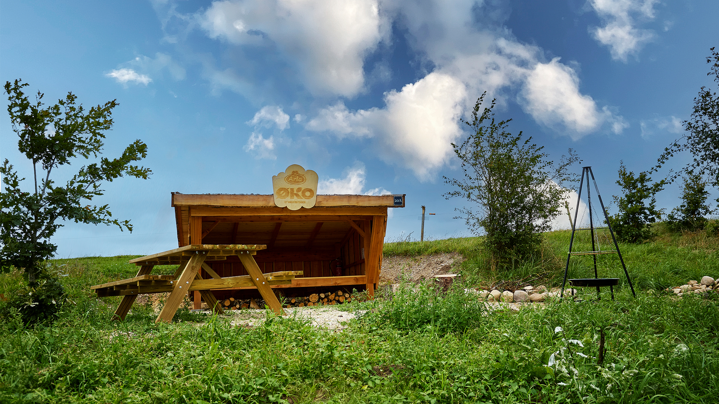 Tæt på Arla® ØKO shelteret er der p-plads, og herfra fører marken til shelteret. Fra p-pladsen er der cirka 100 meter gennem et lettere kuperet landskab.