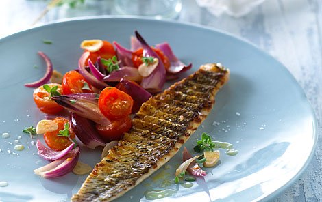Fjæsing og sauterede tomater